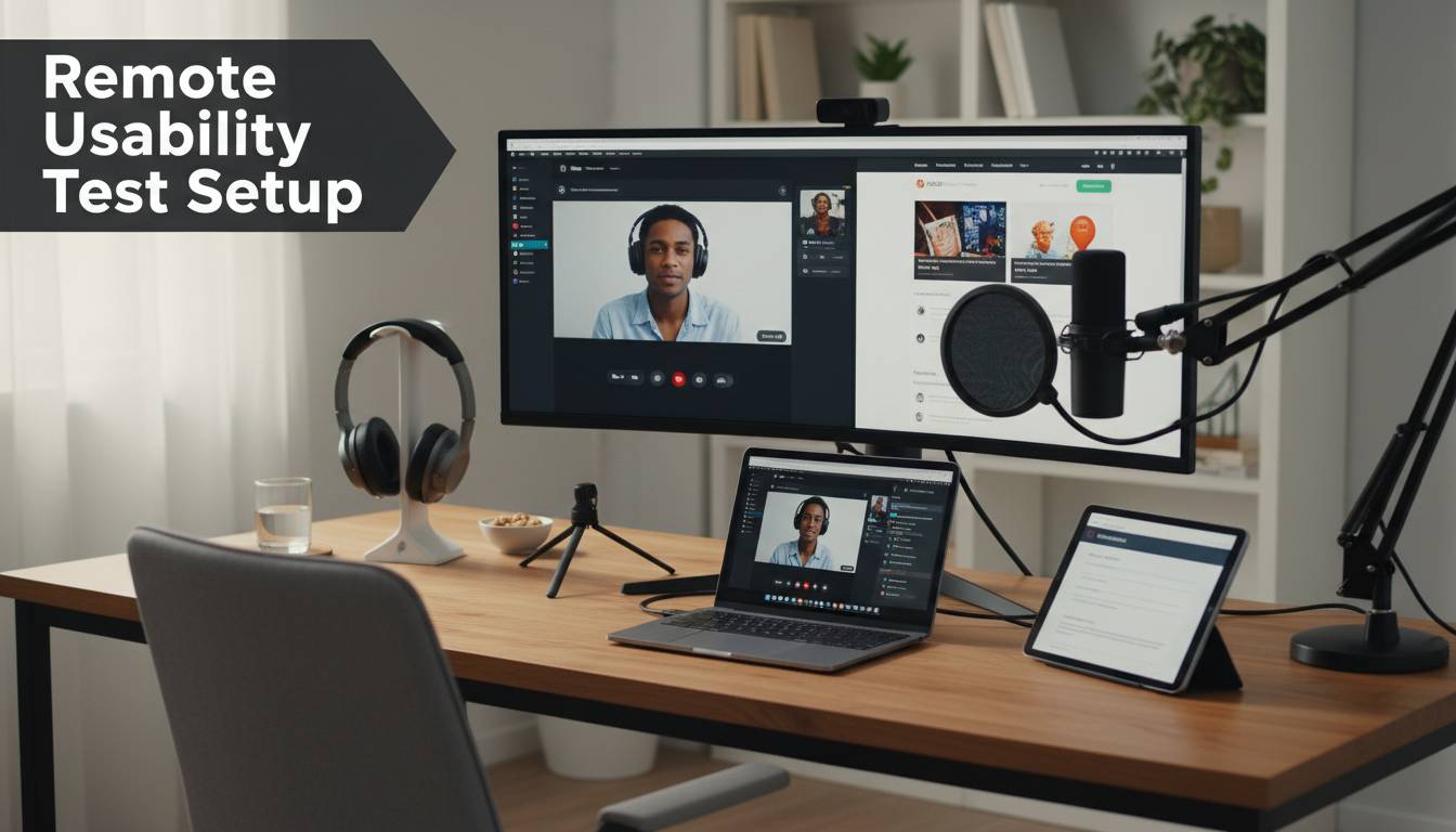 This guide covers preparing your remote usability testing setup from the hardware on your desk to the software connecting you to participants across time zones. I’ll share equipment recommendations at three price points because not every team has a professional studio budget. I’ll also point out the mistakes I see most frequently—and explain why that advice about always using external microphones might not apply to your specific situation.