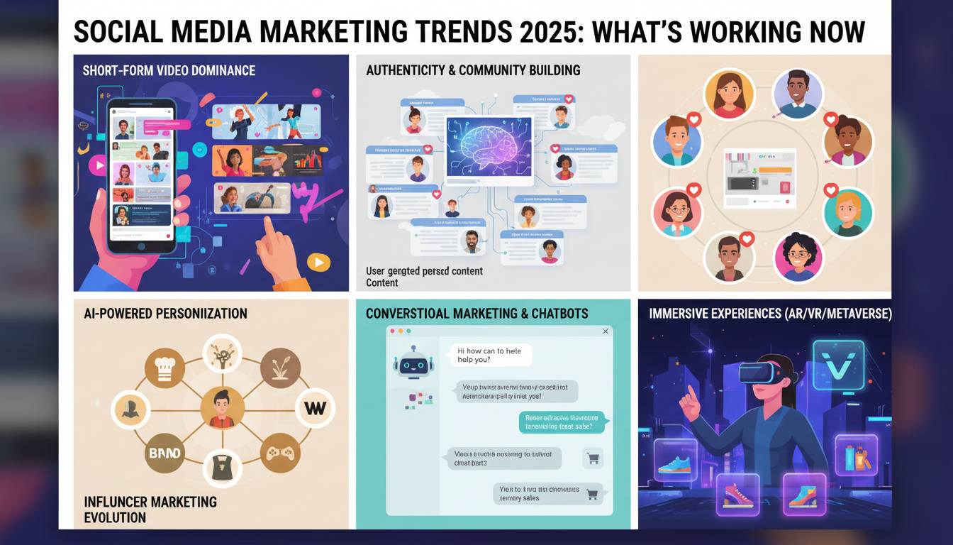 AI-powered marketing automation, short-form video, social commerce growth, and influencer marketing shifting toward micro-influencers and authentic partnerships. Privacy-focused strategies and platform diversification have also become non-negotiable.