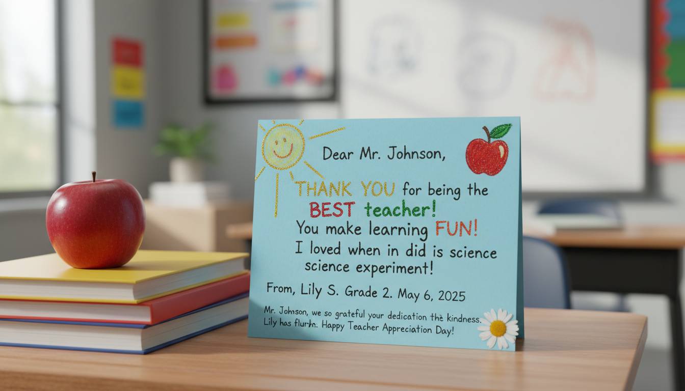 Handwritten notes from students remain among the most treasured gifts teachers receive. Physical notes can be saved and revisited during difficult times, unlike digital messages that disappear into inboxes. Students should be encouraged to be specific about what they appreciate—not just “thank you” but explanations of how specific lessons, encouragement, or classroom moments impacted them personally.