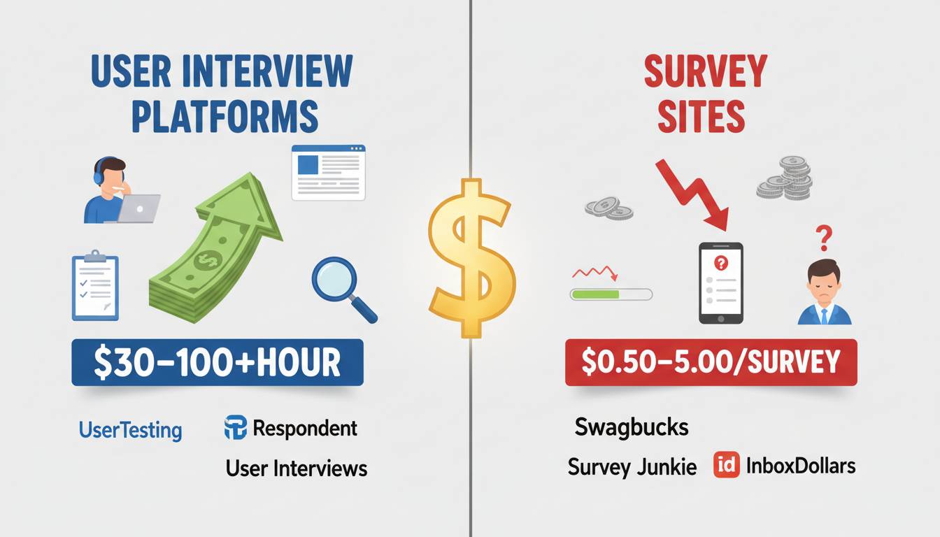 If you’re trying to figure out whether spending your free time on user interviews or survey sites will actually put more money in your pocket, you’re asking the wrong question. The real question is: how much time are you willing to invest, and what’s your tolerance for getting rejected? User interview platforms can pay $50–$150 per hour—sometimes more—but they come with application processes, screening calls, and weeks of waiting between opportunities. Survey sites pay you almost immediately for every completed task, but you’re looking at $2–$8 per hour if you’re efficient, and significantly less if you’re not. The gap isn’t small; it’s massive. But so is the difference in effort required to actually get that money.